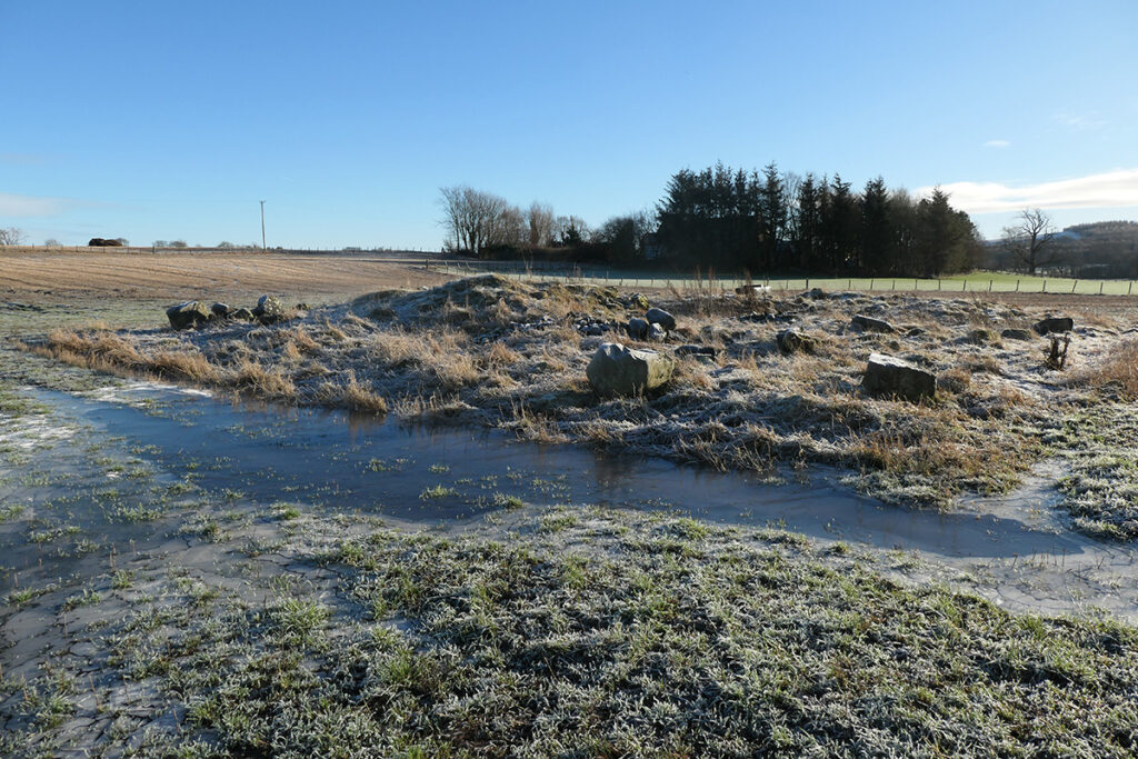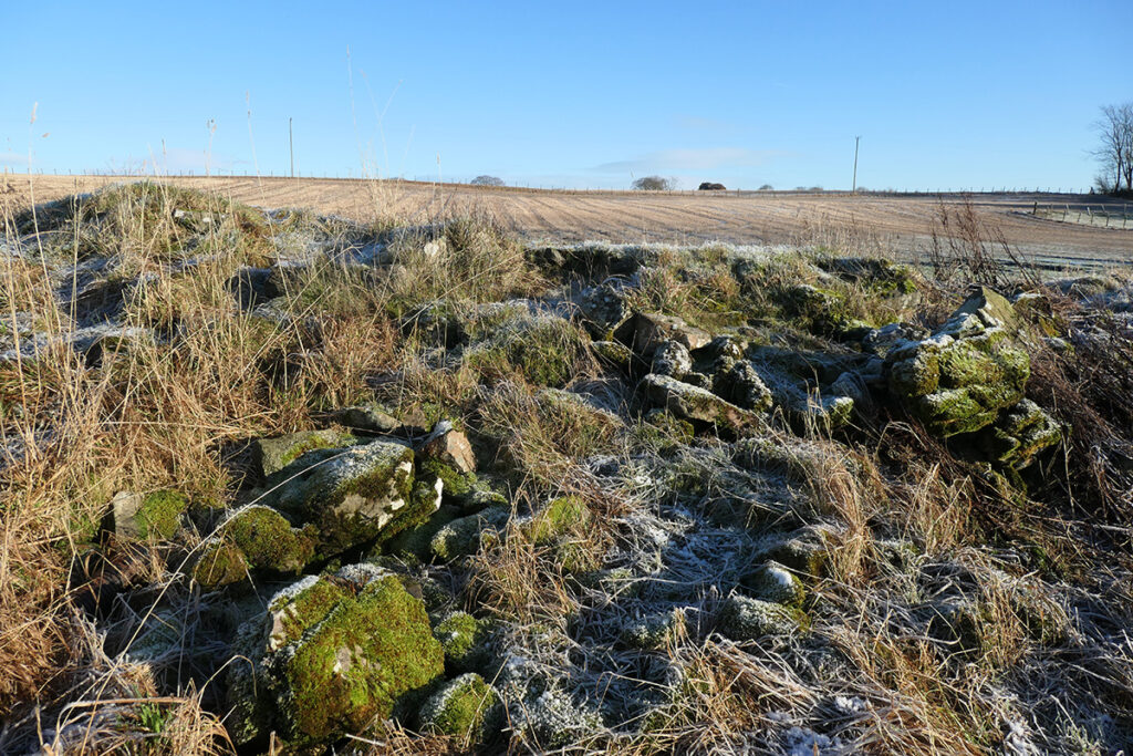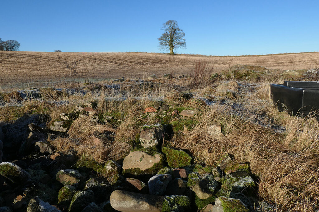 The solid stone walls of the gas works were left to slowly fall into decay. The two gas works buildings, set within a square enclosure, remained intact but roofless on the 1896 map; although a small square feature – perhaps a chimney stalk – was by then missing. When built, the gas works were set in a secluded hollow within wooded parkland. By 1896 the area had been ploughed up and the gas-works site had become as an inconvenient island within an open field. This continues to be the case. The building seems to have been robbed of some of its dressed sandstone over the years, and field stones thrown up while ploughing have been dumped back onto the site. However the wall-lines of the buildings can still be made out within this rubble, and probably extend a metre or so down to the original ground surface.