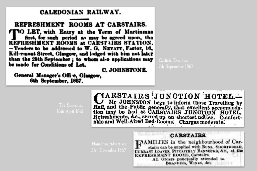Local man Alexander Dobie secured the lease of the Carstairs Junction refreshment rooms in 1868 and continued to operate them for most of the period until his death in 1898. He seems to have been a public-spirited individual, providing silver trophies for the local quoiting club, and sponsoring community events.