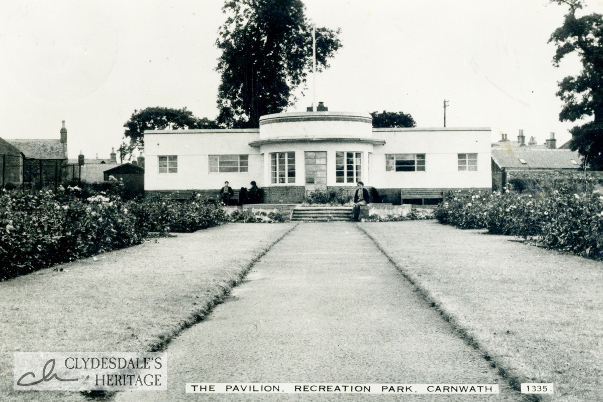 Many new recreation grounds, parks and sports facilities were established during the 1930’s, encouraged by grants from the National Play Fields Association, and often supported by public subscription. In Carnwath, Lady Lockhart was happy to sell the Council a plot of land to the west of Biggar Road for the construction of a new public park. This modest facility included two tennis courts and a bowling green, and featured a central path with rose beds leading to a pavilion equipped with all necessary facilities. A football pitch was subsequently added, funded under a programme to commemorate the reign of King George V.