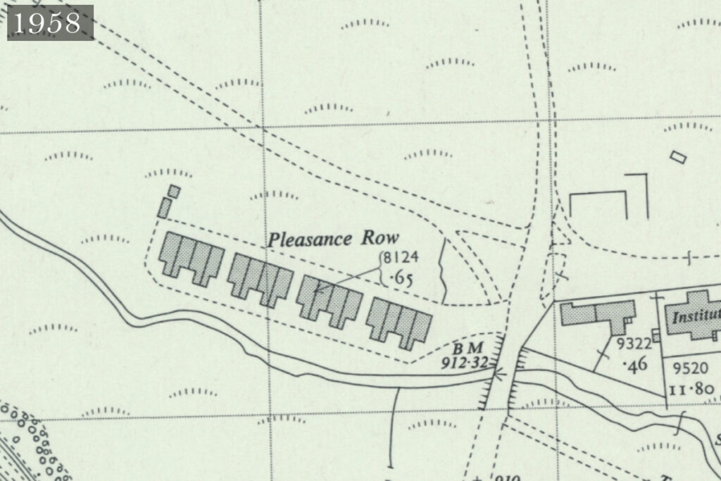 According to the Oxford English dictionary, a “pleasance” is a secluded part of a garden often laid out with trees, where one might promenade at one’s leisure. It’s hard to see how such a description could reasonably be applied to a row of miner’s cottages, now set among bogs, bings, and conifer plantations, a couple of miles north of the village of Forth.